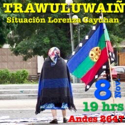 Hoy martes 8 de noviembre a las 19.00 hrs. en Andes 2647 (metro cumming, entre cueto y sotomayor) se realizará el Trawuluwaiñ sobre la situación de Lorenza Cauyuhan: Las diversas caras de la represion del estado de Chile contra el pueblo mapuche. A continuación extendemos la invitación: