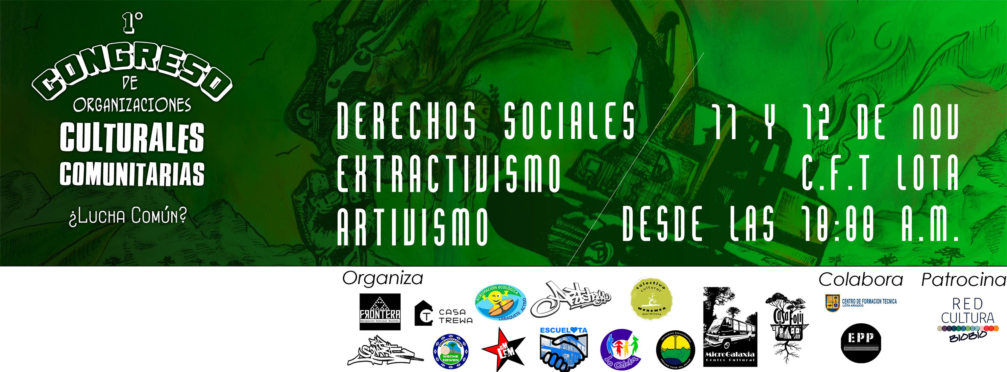 Los días sábado 11 y domingo 12 de noviembre de 2017, en la ciudad de Lota, región del Biobío, se realizará el «Primer congreso de organizaciones culturales comunitarias del Bío Bío: Derechos Sociales, Extractivismo y artivismo», actividad gratuita y abierta a público de todas las edades.