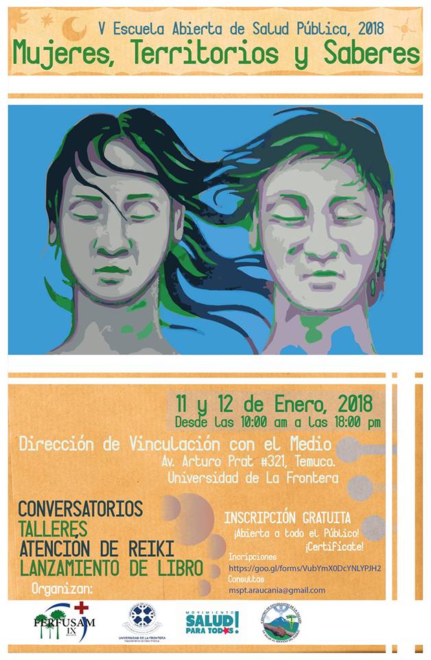 En su programa, contempla el foro conversatorio “Mujeres mapuche y Salud: Luchas territoriales hacia la decolonización”, con las intervenciones de la werken Ingrid Conejeros, la abogada Natividad Llanquileo y la dirigenta Millaray Painemal, que se realizará el viernes 12 de enero de 12 a 13,30 horas en dependencias de la Universidad de la Frontera, Calle Prat 321, Temuco (Dirección de vinculación con el medio, centro de extensión).