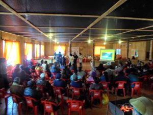 El encuentro fue facilitado por las dirigentes Luz María Huenupi e Irene Romero, y fue encabezada en sus palabras de bienvenida por el Lonko José Relmucao, destacándose el diagnóstico de las diferentes amenazas de proyectos hidroeléctricos y tendidos que pretenden instalarse en la zona, las plantas de pisciculturas de la industria salmonera, geotermia y hasta intereses mineros, varios, afectando directamente a las Comunidades Mapuche.