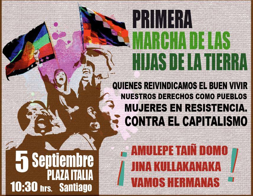 Primera marcha de las hijas de la tierra, 5 Septiembre, 10,30 horas, Plaza Italia, Santiago