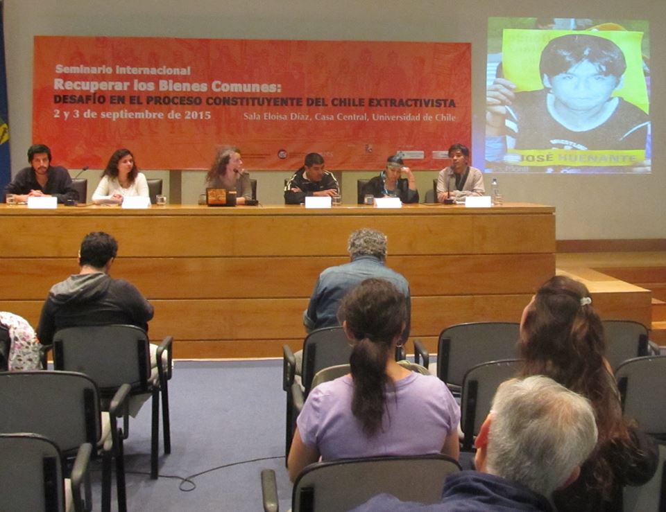 Espacio conmemorativo por José Huenante, en el marco del Seminario Internacional “Recuperar los bienes comunes: desafío en el proceso constituyente del Chile extractivista”, realizado en Santiago, casa central de la Universidad de Chile, con la intervención de Ricardo Lüer, Presidente de la Federación de estudiantes de la UFRO; Millaray Painemal, Vice presidenta nacional de Anamuri; y Alfredo Seguel, comunicaciones Red por la defensa de los territorios. 3 de septiembre 2015.-