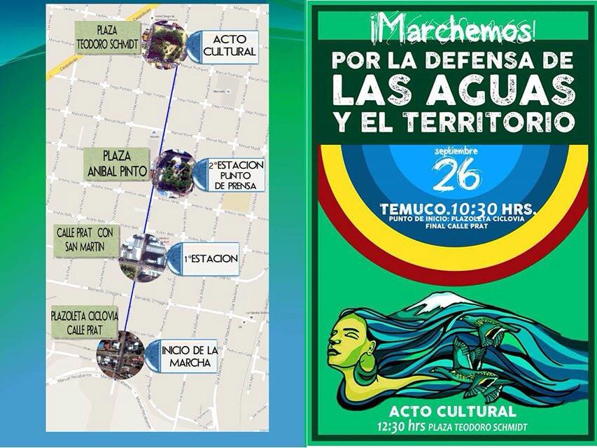 En atención a la manifestación que se realizará en Temuco este 26 de septiembre, se comparte el siguiente díptico sobre “defensa de las aguas y los territorios” en la denominada Región de la Araucanía.