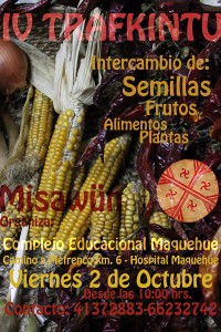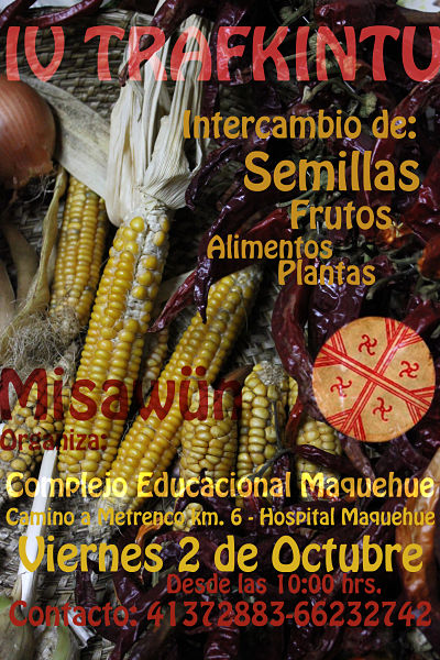 En este espacio de intercambio podrán traer semillas no transgénicas, árboles nativos, mermeladas, artesanías, tejidos, tallados, conservas, huevos, aves o cualquier producto de elaboración propia. Para crear un ambiente más ameno, se sugiere llevar algún alimento para compartir en el misawün que realizaremos para cerrar la jornada.