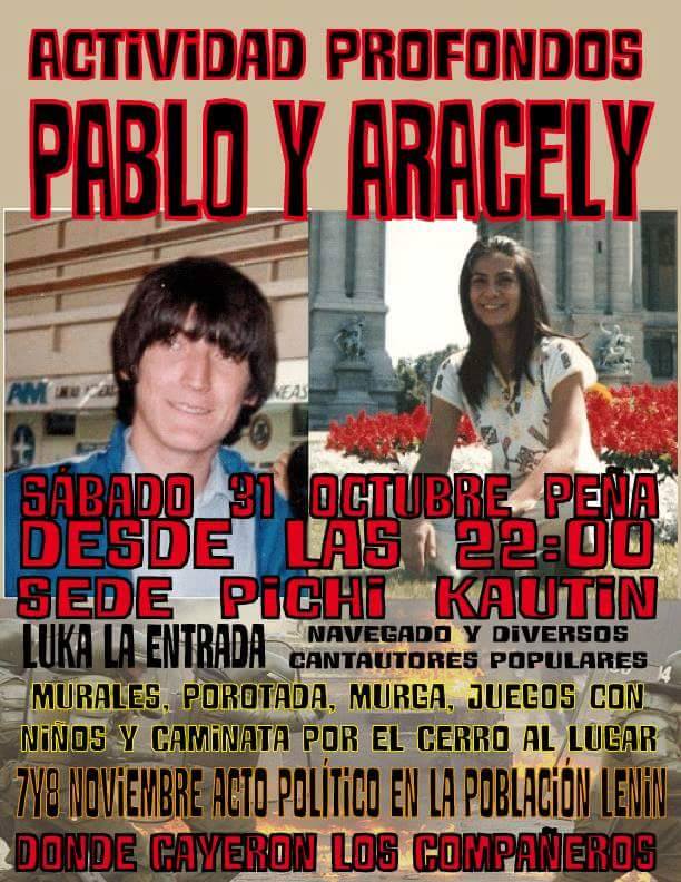 El día sábado 31 de octubre desde las 22 horas s e realizará la peña en sede Pichi Kautin ( Calle Jose Rosario Muñoz #475 Frente A Multicancha Techada) mientras que los días 7 y 8 de noviembre se realizará un acto político en la población Lenin. Más información a continuación.