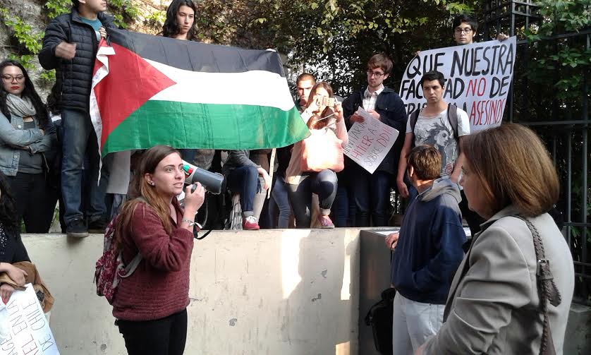 El representante del Estado Hebreo dio la conferencia “Israel en la ONU” ayer miércoles 28 de octubre en la Facultad de Derecho, lo que fue considerado como una afrenta por estudiantes y grupos palestinos del interior de la Universidad. Tras la presión de los manifestantes, que lograron que Carabineros de Chile saliera de la Universidad, las autoridades de la Escuela de Derecho se comprometieron a establecer un espacio de diálogo encaminado a cortar las relaciones con Israel.