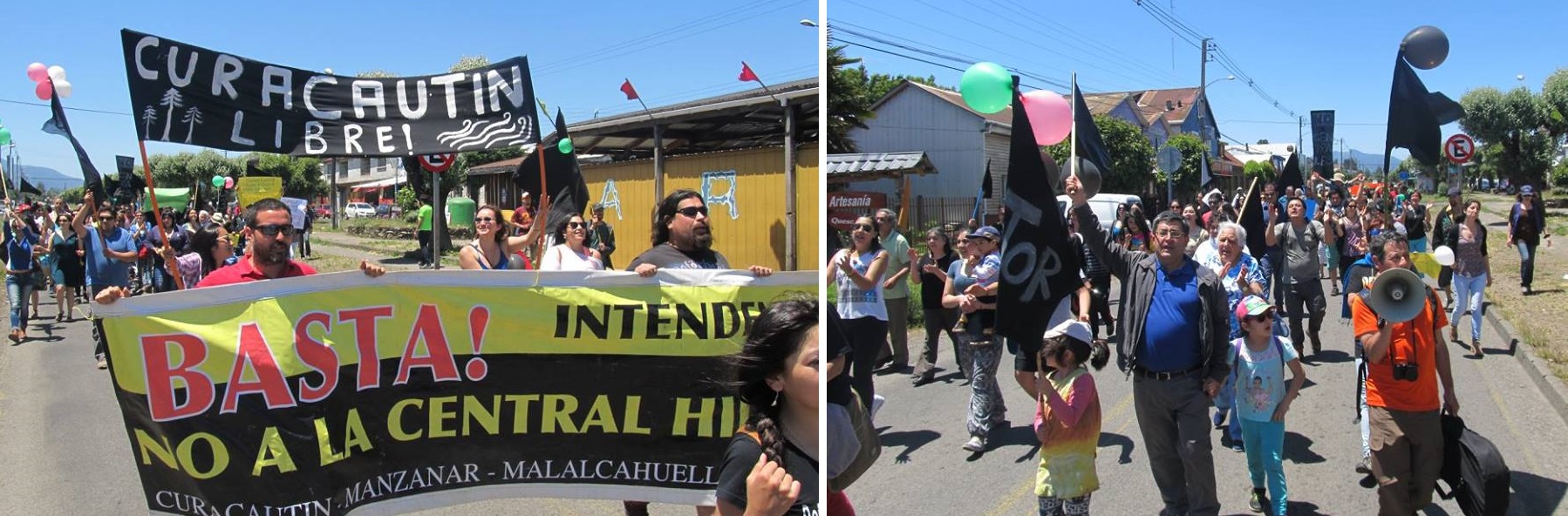 Cientos de personas se reunieron este sábado 19 de diciembre en la Plaza de Curacautín para luego manifestarse por las principales calles de la localidad en repudio a la reciente aprobación del Comité de Ministros del proyecto hidroeléctrico Doña Alicia, como parte de las diversas protestas que se han realizado por estos días en esta zona pre cordillerana de la Región de la Araucanía.