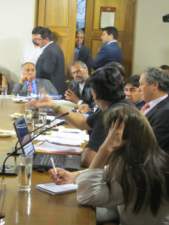 La delegación vinculada a la Red por la Defensa de los Territorios a través de: Ely López, werken Lof Trankura, comuna de Curarrehue; Elsa Alcan, werken Lof Karilafken, comuna de Pitrufquen; Alvaro Herrera, organización Vive Curacautín; Jaime Calfullan, werken defensa territorio Melipeuco; Alfredo Seguel y Emilio Painemal del área de comunicaciones de la Red, expusieron en la Comisión de Medio Ambiente este martes 20 de enero a partir de las 16,00 horas, instancia que resolvió por unanimidad sesionar en la Región de la Araucanía para abordar los conflictos hidroeléctricos en esta Región y citar a los Ministros de Energía y Medio Ambiente para responder por las situaciones denunciadas, cuya fecha tentativa sería a fines de marzo de este 2016.