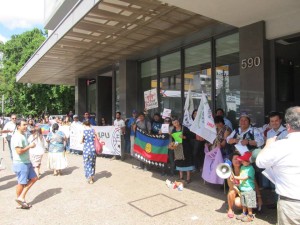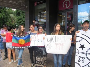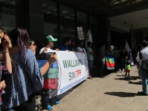 Nota, audio e imágenes / Una concurrida protesta se realizó en el frontis del edificio intendencia de la Araucanía en la ciudad de Temuco este jueves 4 de febrero a partir de las 11 de la mañana, donde asistieron representaciones de diversas organizaciones sociales bajo la consigna “Wallmapu sin TPP” (Wallmapu: denominación del territorio ancestral del Pueblo Mapuche), en rechazo a la firma realizada por el gobierno de Chile en Nueva Zelanda del tratado comercial transpacífico TPP el que es considerado un atentado a la soberanía de los Pueblos en el País.