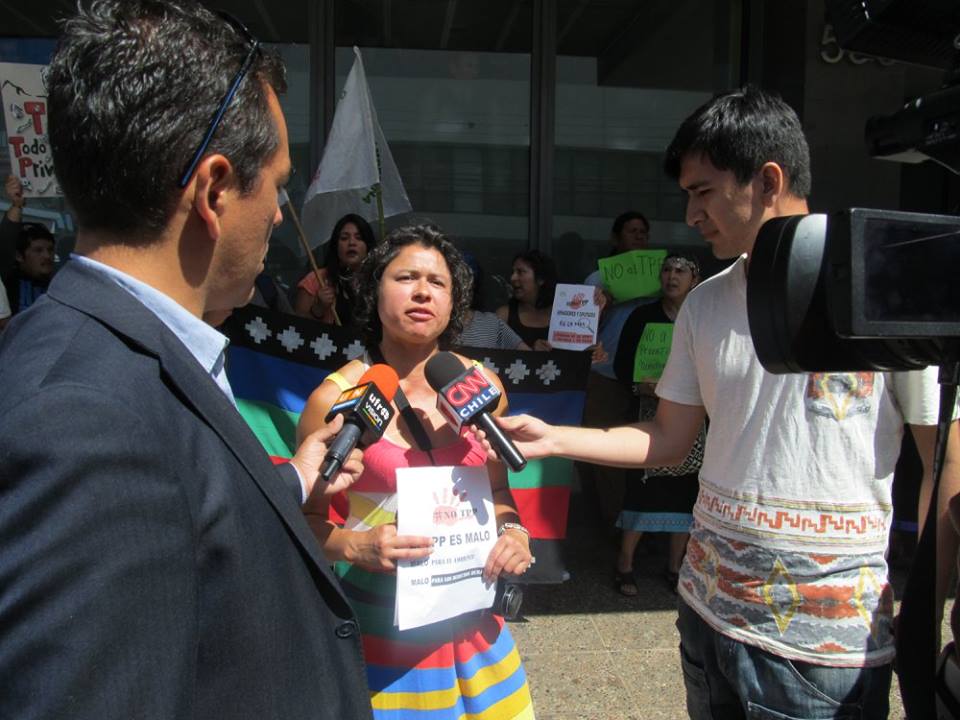Las opiniones de rechazo al TPP en Temuco por parte de un movimiento intercultural son expresadas a continuación a través de Alejandra Parra de Rada; Ana Llao, Consejera Mapuche e integrante Ad – Mapu; y Millaray Painemal de ANAMURI.