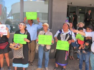 Representaciones de la Red de Acción por los Derechos Ambientales (RADA), La Asociación Nacional de Mujeres Rurales e Indígenas (ANAMURI), Ad – Mapu, Wallmapuwen, Red de Semillas Libres , también de trabajadores como Fenpruss, entre otras, se manifestaron y señalaron que algunos de los efectos de este tratado para la ciudadanía será el encarecimiento de medicamentos, privatización de la semilla, pérdida de libertad de expresión y acceso a la información, tratado que aún puede ser impedido en caso que el Congreso de la República no lo ratifique.