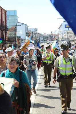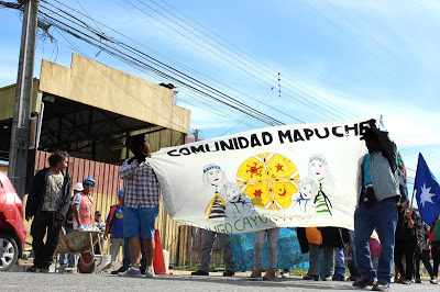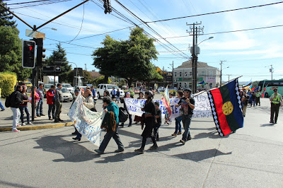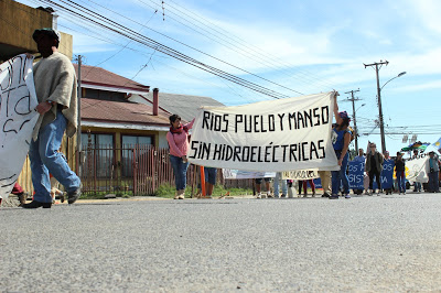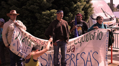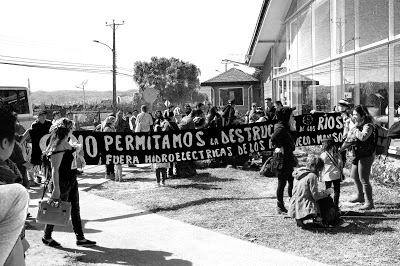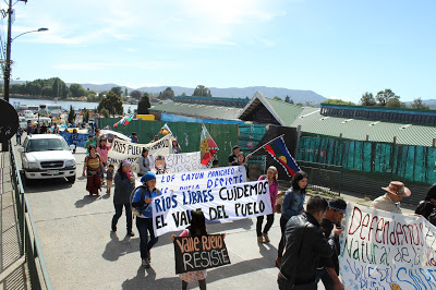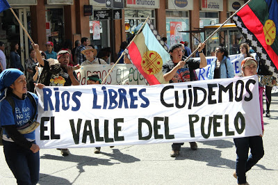 Durante el pasado viernes 4 de marzo, viajaron del valle de Puelo Comunidades Mapuche como no Mapuche a la ciudad de Valdivia acompañados de otras organizaciones y personas que solidarizan con el rechazo absoluto contra la Cental de paso Mediterráneo. La manifestación partió desde el terminal de buses (Valdivia) con una marcha por el centro de la ciudad cortando el transito. Fuerte y claro se escuchaban mujeres y hombres gritar en oposición tanto al gobierno por aprobar este proyecto como a la centrales Hidroélctricas que una ves mas pone sus garras sangrientas para destruir un territorio mas hoy es Puelo