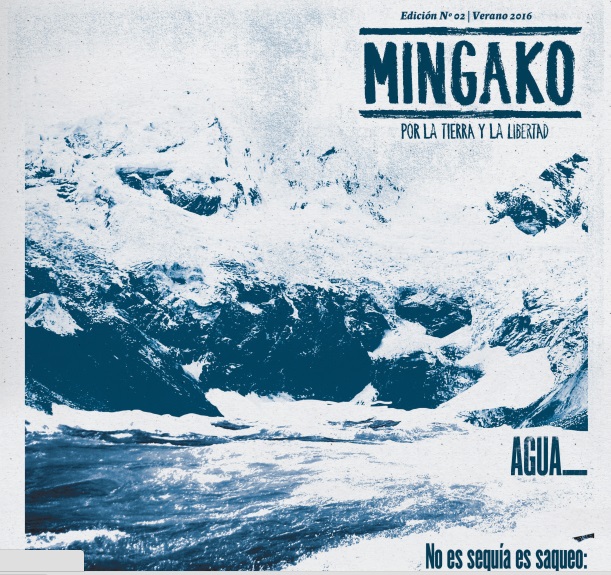 Mingako es una revista independiente, nacida el año 2015 y que se autogestiona en la región chilena, enfocando su interés en las problemáticas ambientales y sociales desde una mirada reflexiva y combativa. su segundo número aborda algunas aristas del intenso conflicto por el agua en la región chilena.