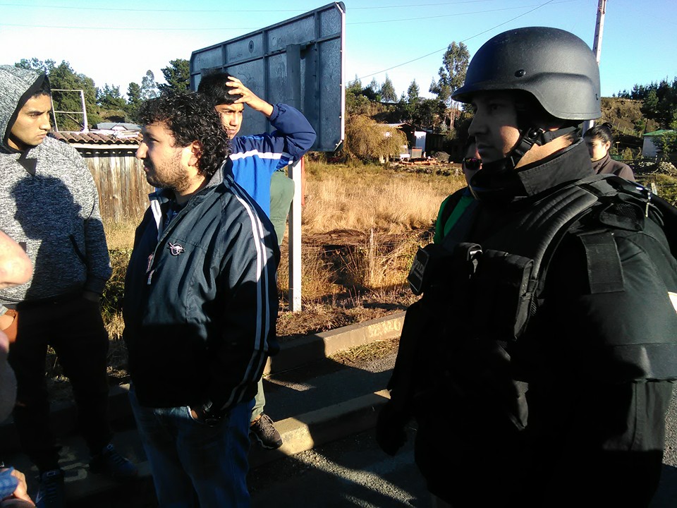 Momentos antes señalaba: “A esta hora la PDI y el Gope allanan casa del werken Victor Mariñan de la comunidad Kelgko de San Ramón, en el lago Lleu Lleu. Comuneros mantienen protegiendo al comunero debido que la policía no cuenta con la orden de detención respectiva. Militarizado el ingreso a San Ramón, a metros de la escuela.”