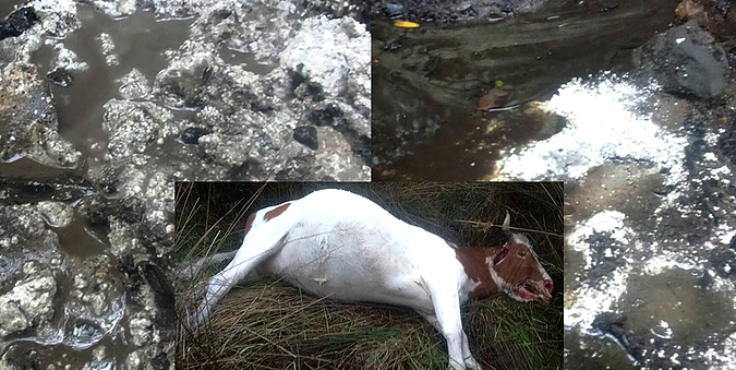 Los vecinos del sector advierten que el agua que utilizan para dar de beber a animales y abastecer plantaciones agrícolas se tornó negra y turbia, afectando fuertemente al sector agrícola y ganadero de la zona, lugar donde fueron hallados animales muertos y en mal estado, impedidos de caminar y comer.