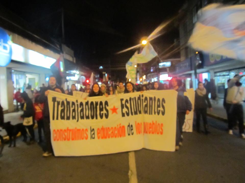 La marcha se realizó de manera pacífica a partir de las 18 horas la que recorrió diversas calles de Temuco, destacándose la presencia de estudiantes de la Universidad Católica de Temuco, Universidad de la Frontera, organizaciones de estudiantes secundarios y delegaciones de organizaciones de trabajadores.