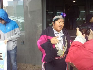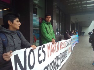 En la ocasión se realizó un mitin en las afueras de la Intendencia en solidaridad con Chiloé y los diversos territorios de la Región de los Lagos devastados por la industria salmonera, siendo uno de los hechos más graves la descarga al mar de 9 mil toneladas de desechos salmoneros y que han causado una severa contaminación. “El Movimiento en la zona sur que se está dando es en respuesta a las políticas estatales y a los negocios de grandes empresas. En Chiloé además de las salmoneras y los pinos y eucaliptus, también hay amenazas mineras y de energía. Hoy la gente está pasando hambre a causa de estas políticas”, señaló José González Cheuqueman, del Movimiento Chilote en Temuco.