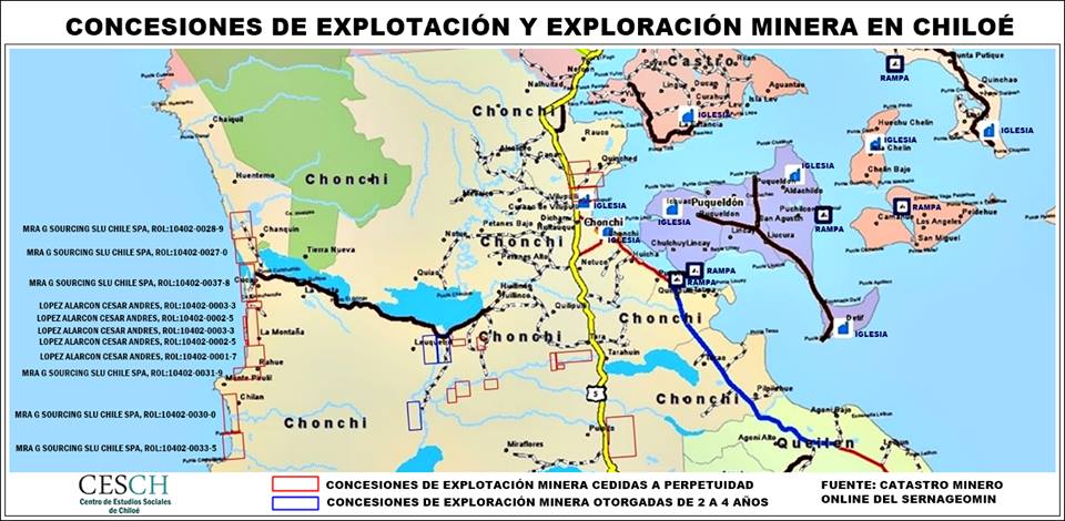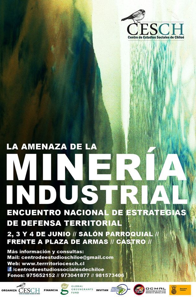 Por ello, y en medio de este indolente “estado de catástrofe”, el Centro de Estudios Sociales de Chiloé las y los convoca al Encuentro Nacional de Estretegias de Defensa Territorial frente a la amenaza de la Minería Industrial en el archipiélago. Nueva amenaza que se materializa con la presencia de 310 concesiones mineras en Chiloé, 209 de exploración y 101 de explotación, las cuales -si no imponemos una gestión democrática del territorio- podrían generar gravísimos impactos a nivel ambiental, social y económico debido a la destrucción territorial. Somos un archipiélago sobreexplotado y las consecuencias están a la vista, por ello, esta actividad se propone como un espacio de intercambio de experiencias y herramientas teóricas, prácticas y jurídicas que nos guíen en el desarrollo de estrategias de defensa y resistencia territorial frente al modelo extractivista expresado, en este caso, a través de la amenaza de la Minería Industrial en Chiloé.