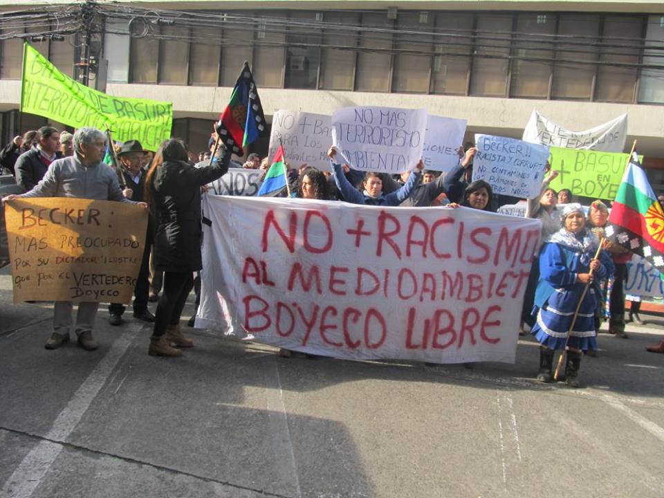 Más de cuatrocientas personas en su mayoría habitantes de comunidades del sector Boyeco, afectadas por el funcionamiento del vertedero municipal, se manifestaron este miércoles 8 de junio en Temuco en protesta a las políticas racistas y en especial, ante los anuncios del Alcalde de Temuco Miguel Becker de querer prorrogar en dos años más el funcionamiento del recinto basural que ya lleva 24 años causando graves impactos al territorio y que tiene como plazo de cierre en diciembre del presente año.