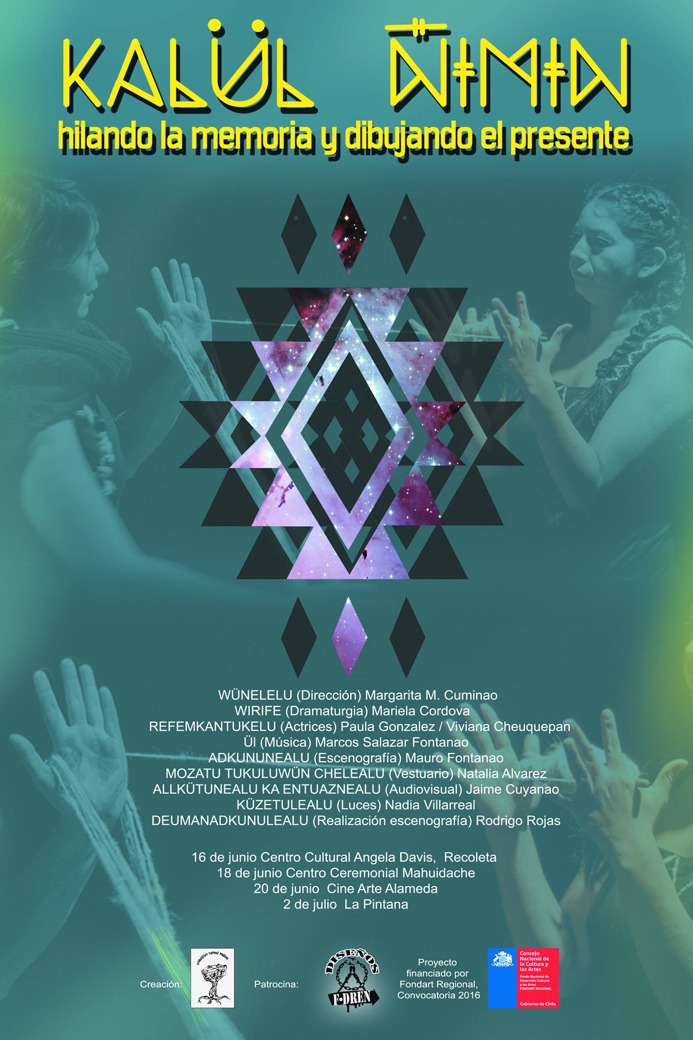 KALÜL ÑIMIN, Hilando la memoria y dibujando el presente, es la segunda obra de Teatro Mapuche del Colectivo Artístico Rumel Mulen, que narra una mirada femenina sobre el proceso de migración y conflicto actual. La obra, utiliza la estética basada en el ñimin (dibujos del telar) y los pewma (sueños), así como también, elementos escénicos propios de la cultura mapuche, como el ülkantun (canto) y pürrün (danza).