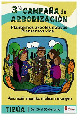 Por tercer año consecutivo en Tirúa se ha levantado una bella campaña que tiene como objetivo arborizar con especies nativas en diversos lugares de la comuna, zona afectada por los embates de la industria forestal quien ha venido plagando de especies exóticas de pinos y euceliptus.
