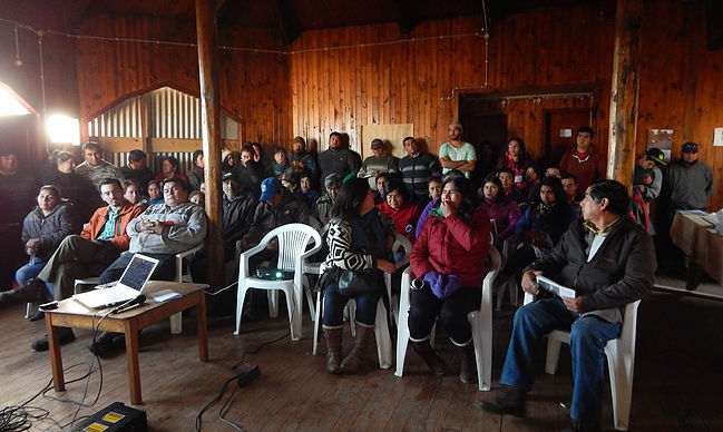 Fue en la sede de la Comunidad Indígena del sector donde, a partir de las 14:30 hrs, parte del equipo de investigadores del Centro de Estudios Sociales de Chiloé e integrantes de las comunidades de Huentemó, Palihue, Chaique, Chanquín y Cucao dan inicio a una exhaustiva revisión del avance de concesiones de exploración y explotación minera en la bahía y el archipiélago en general, los nombres y empresas que hay detrás de éstas, las excesivas garantías que entrega la Ley Minera al concesionario, así como la relación que hay entre las concesiones y los mega-parques eólicos. De igual forma se conversó sobre los potenciales impactos sociales y ambientales de un mega parque eólico en el sector de Chanquín-Palihue, así como las diferentes estrategias que generalmente ocupan las grandes empresas para entrar en las comunidades.