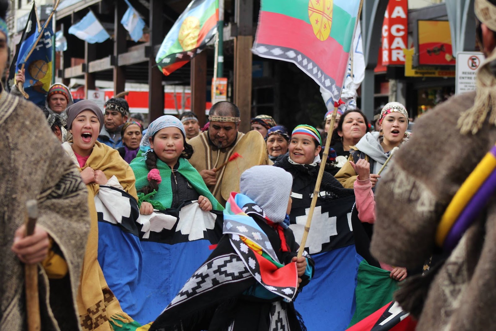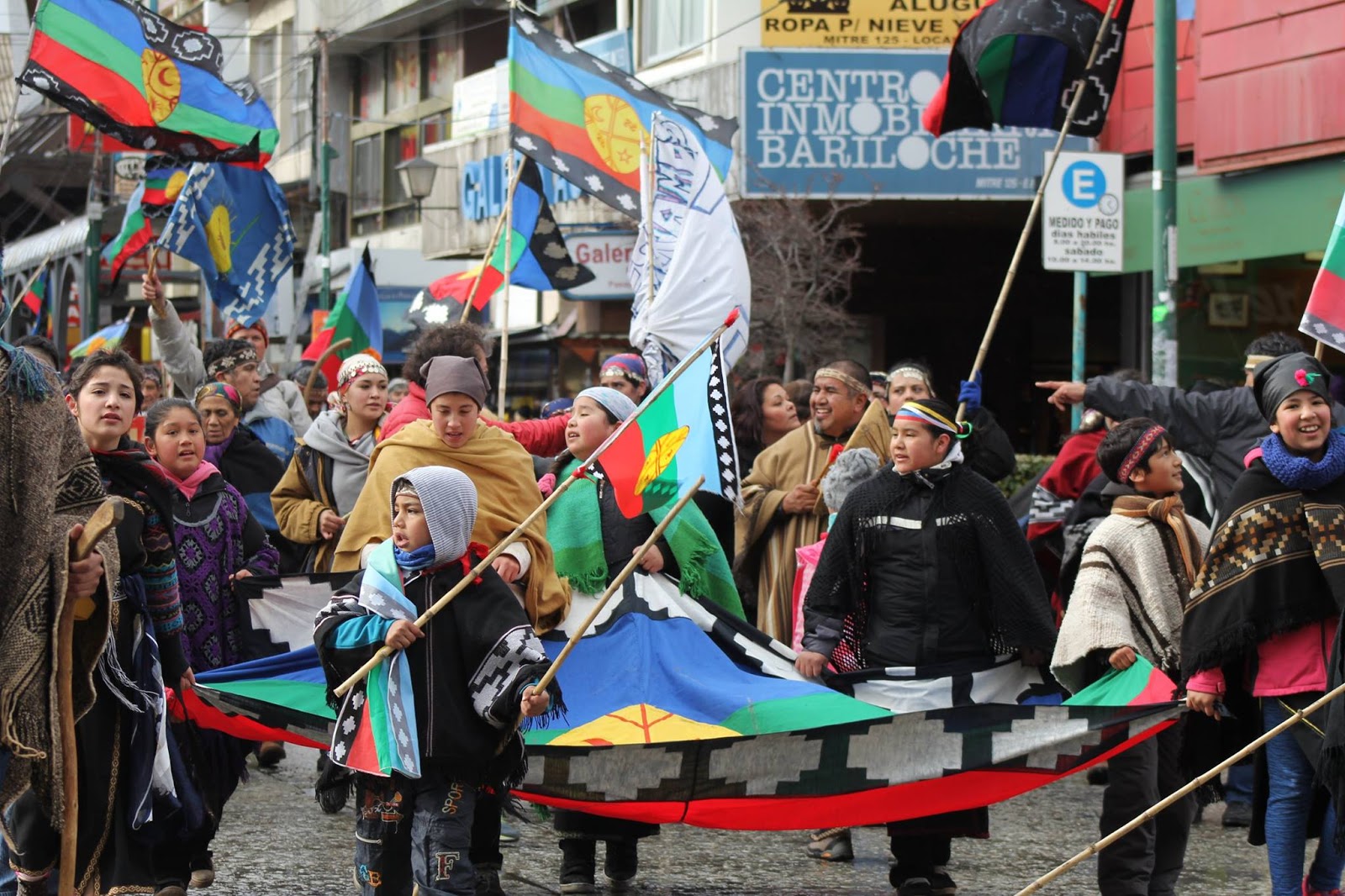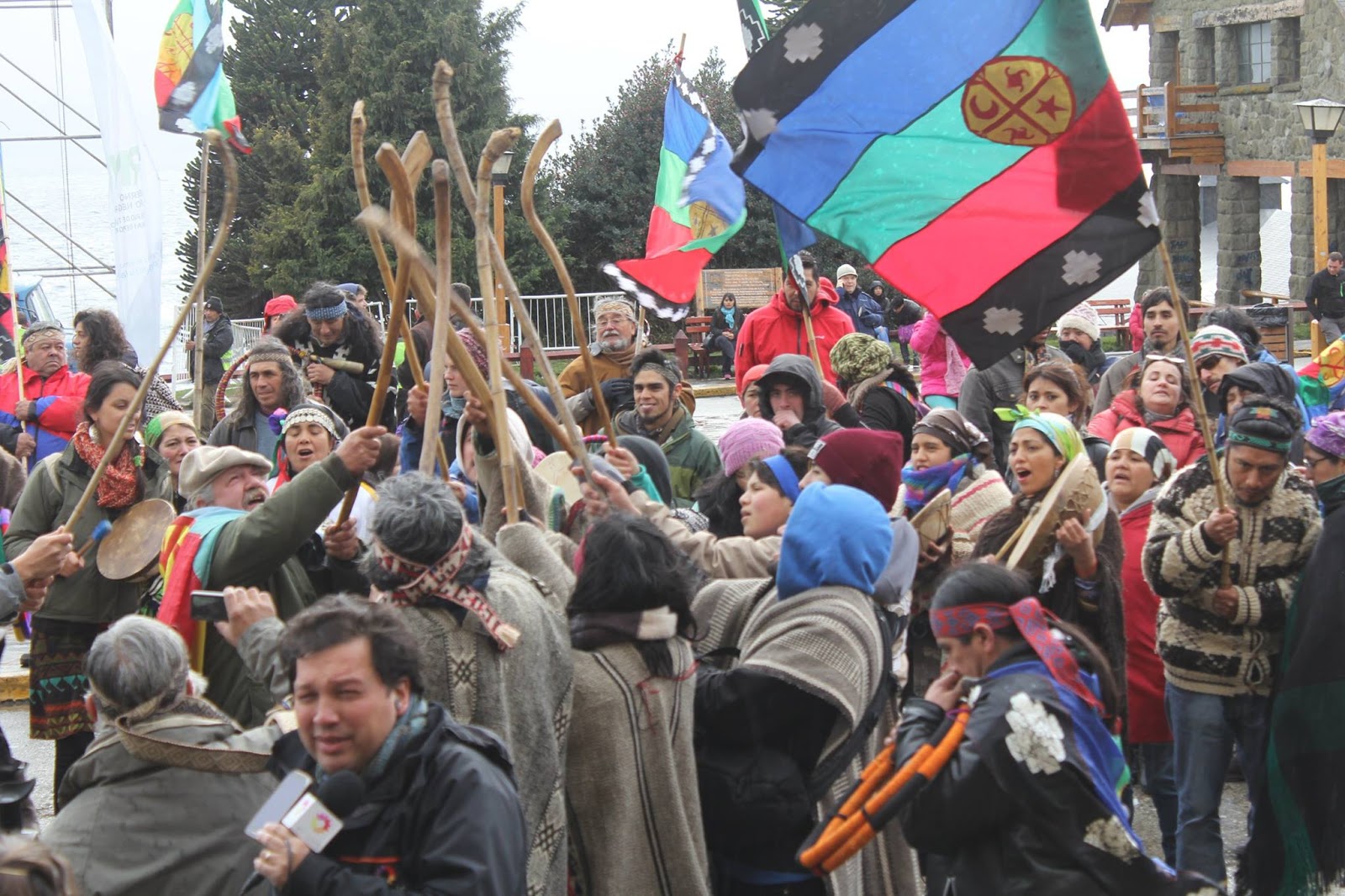 Frente al Lago Nahuel Huapi, y frente al monumento al genocida Julio Argentino Roca, integrantes de los pueblos Mapuche, Tehuelche, Shel´nam (Selknam), Gununa kuna, alzamos nuestra voz, reivindicamos nuestra permanencia en los territorios, y defendemos nuestros derechos, tal como lo hicieron nuestros queridos ancestros, Inakayal, Foyel y tantos otros.