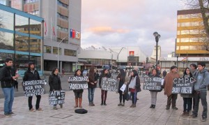 Audio / nota / Imágenes / El Mitin fue convocado por la Red por la defensa de los territorios este jueves 25 de agosto a partir de las 18 horas y reunió a unas cincuenta personas en su mayoría dirigentes/as y representantes de diversas organizaciones sociales de Temuco y la Araucanía, quienes participaron en el acto público que incluyó la lectura de una declaración oficial, la intervención de representantes de agrupaciones, una velatón y la denuncia de múltiples empresas señaladas como parte del saqueo neoliberal extractivista.