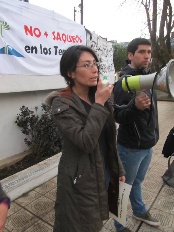 Noelia Garrido, Presidenta de la FEUFRO, hizo hincapié en la unidad de estudiantes, trabajadores/as y defensores/as de los territorios, para terminar con este modelo de desarrollo destructivo basado en el capital y acaparamiento y que causa profundas injusticias.
