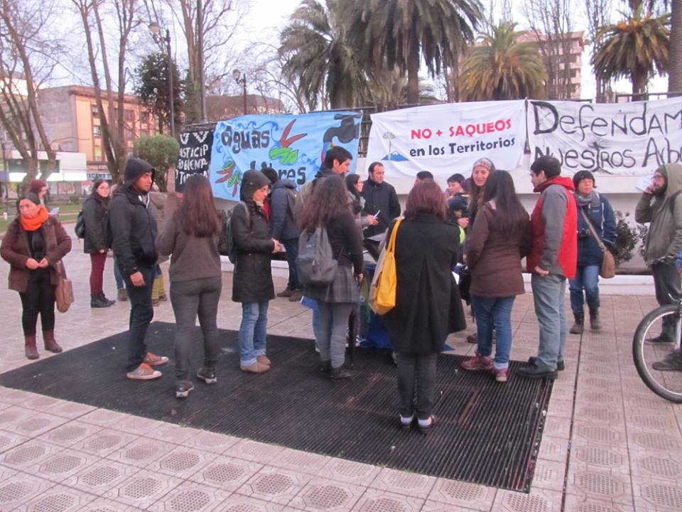 La Red por la Defensa de los Territorios convocó a un mitin concentración en la Plaza de Armas (Plaza Aníbal Pinto) a partir de las 18 horas de este jueves 25 de agosto. Allí acudieron representaciones de: Lof trankura (Curarrehue), defensa río Allipén de Cunco, Federación de estudiantes de la Universidad de la Frontera, Centro de estudiantes Ingeniería de RRNN Ufro, Campaña Verde urbano Temuco, Coordinadora NO + AFP con dirigencia de ANEF, FESIR, Colectivo trabajadores de la salud, también, de la Agrupación Mapuche Makewe Kimvn, Red de semillas libres Wallmapu, Casa de mujeres de Ngulumapu, , colectivo poetas Mapu Ñuke, Jupic Araucanía y medios independientes: Mapuexpress y Radio Kurruf entre otros.