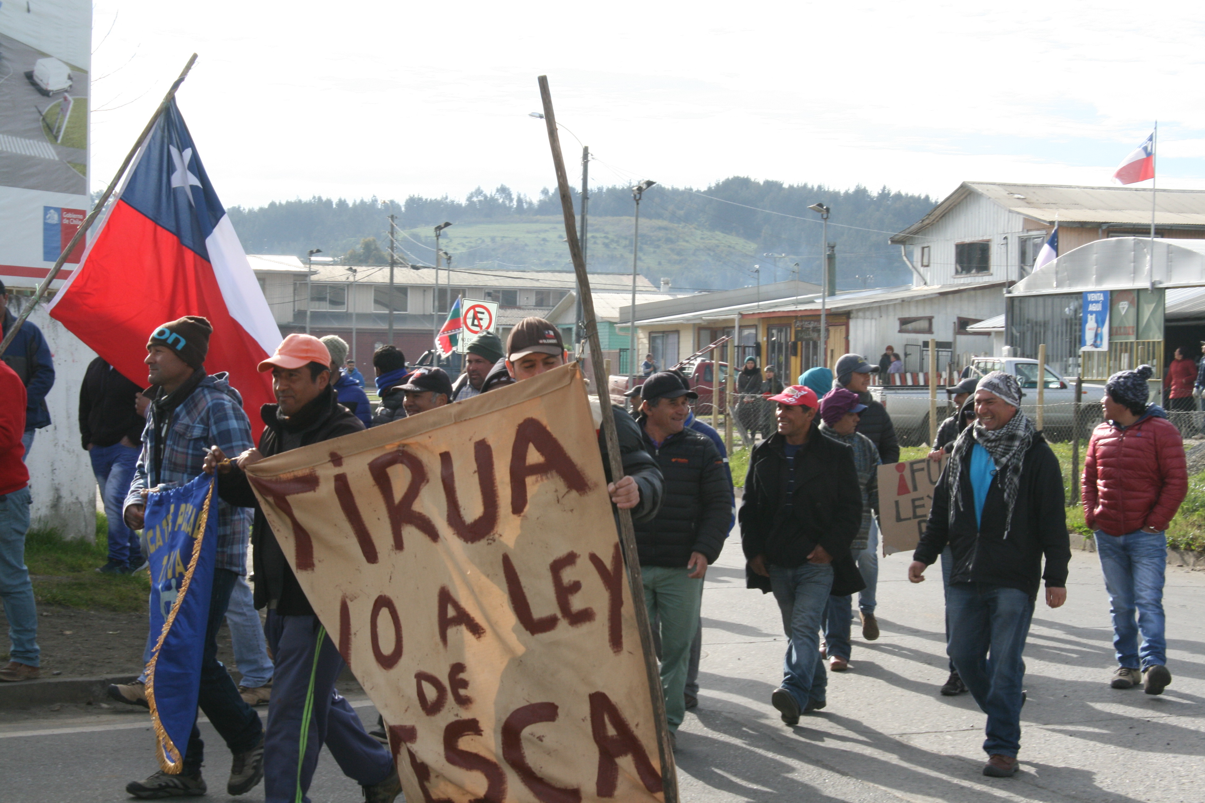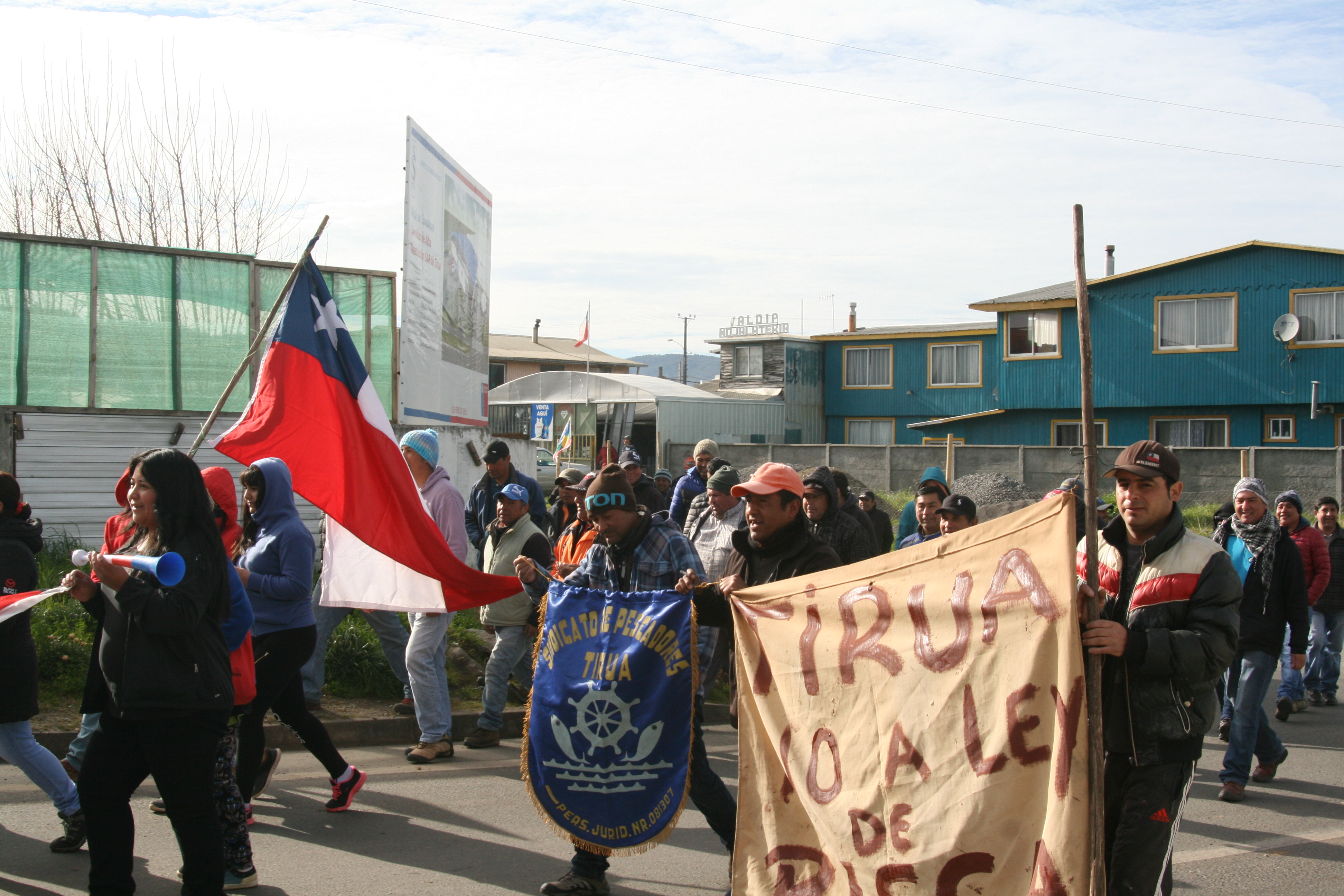 Pescadores de Tirúa y Quidico en la región del Bio bio se suman al Paro Nacional de Pescadores para pedir la anulación de la Ley de Pesca, conocida como Ley Longueira, que privatizó los recursos del mar para beneficio de siete familias, lo que mantiene molestados a los pescadores artesanales que por generaciones se han dedicado a este oficio.