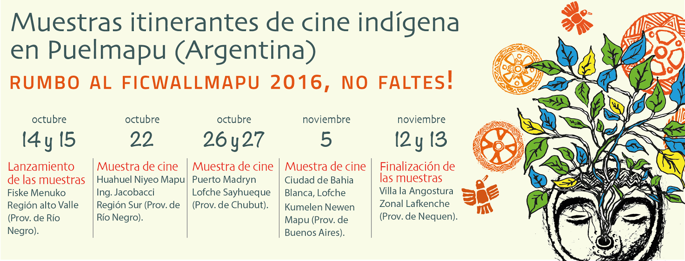 El Territorio Ancestral del Pueblo Mapuche, Wallmapu, será protagonista por segundo año consecutivo de Muestras Itinerante de Cine Indígena en ambos lados de la cordillera. Durante el primer semestre del 2016 FICWALLMAPU realizó un vasto recorrido por distintas localidades de Gulumapu, confirmando además que a partir de octubre la itinerancia se traslada a Puelmapu-Argentina abarcando las Provincias de Río Negro, Chubut, Buenos Aires y Neuquén.