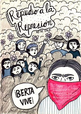 Sabemos bastante y un poquito más sin haber ido a sus universidades, el río nos dice cosas que ustedes no saben, las ancestras tienen un poder que a ustedes les asusta y a nosotras nos conforta, encontramos placer en un cafecito caliente, un amanecer nos es suficiente para ser felices, no ocupamos sus excesos, porque somos inmensamente libres, nos reímos de sus pesados uniformes, de sus torpes decisiones de intentar someternos, Berta anda con nosotras y no es consigna, es una certeza, que a ustedes les seguirá asustando, y es eso, su miedo a nuestra verdad, el espejo que les recuerda lo material, el pisto, la acumulación, el consumo, como única expresión de la felicidad que quieren ver. Dime cuánto ocupas y te diré cuánto reprimes. Les molesta nuestro amor?, nuestra sencillez? Nuestra pobreza digna?, nuestra determinación de pueblos autónomos? Les molesta sabernos dueños de nuestro territorio y que estemos organizados para defenderlo de sus represas, de sus mineras, de sus hoteles, de sus proyectos de muerte.