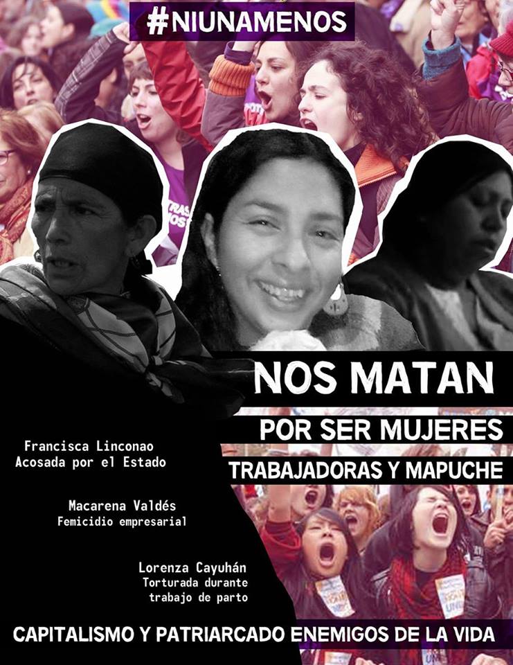 Los hechos de violencia machista ocurridos estas últimas semanas en chile y en latinoamerica, han generado masivas movilizaciones y manifestaciones, poniendo en la palestra la necesidad de terminar como un primer paso con la violencia machista en su más brutal expresión, los femicidios y planteando la discusión acerca del origen de dicha violencia en el sistema de dominación patriarcal. La situación particular del pueblo mapuche, constantemente agredido por el capital y el estado, y en estos casos particulares de violencia hacia la mujer mapuche doblemente violentada y explotada, queremos visibilizar la situación de violencia que sufren los pueblos que habitan este territorio y particularmente las mujeres, pobres, trabajadoras, chilenas y mapuches.