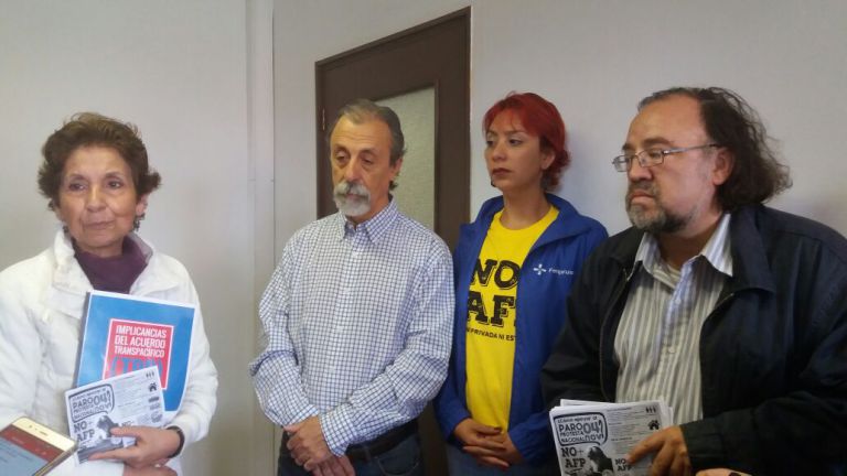 Luis Mesina, dirigente de la Coordinadora No+AFP, afirmó que “estamos haciendo este llamado conjuntamente porque la lucha de “No más AFP” está íntimamente ligada a la lucha contra el TPP, puesto que ese tratado, de aprobarse, hipotecará nuestra soberanía en diversos ámbitos, pero especialmente en el propósito de los chilenos de terminar con este sistema que los ha condenado a pensiones miserables”.