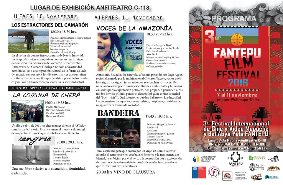 Desde el próximo lunes 7 y hasta el viernes 11 de noviembre, se realizará la tercera versión del Festival Internacional de Cine y Video Mapuche y del Abya Yala, Fantepu 2016.