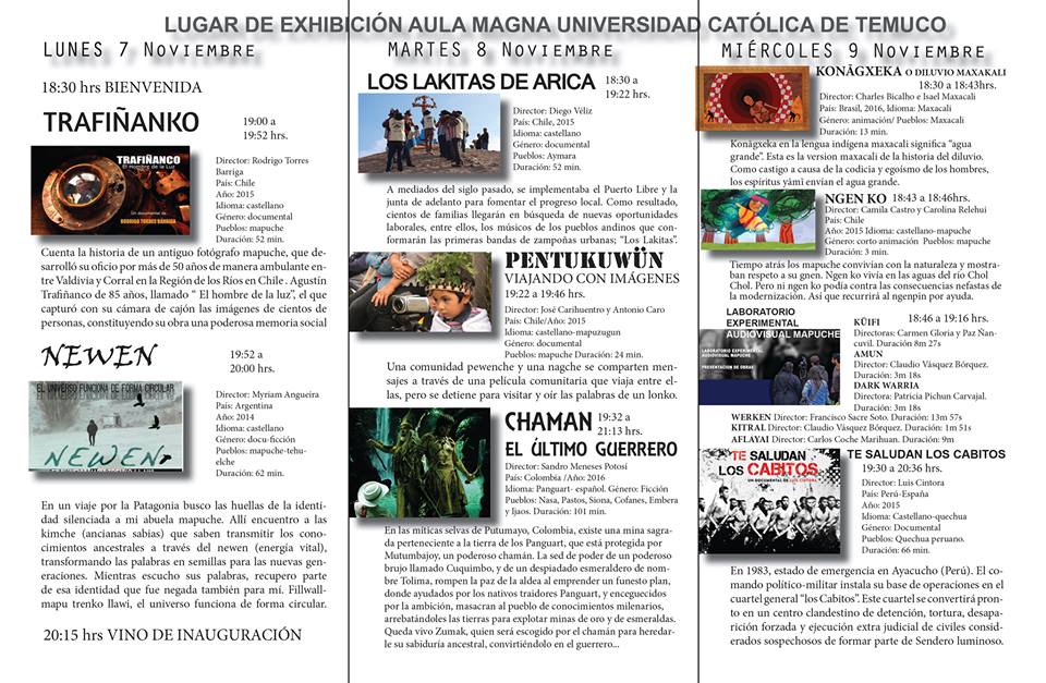El evento que se realizó por primera vez el año 2013, en la ciudad de Temuco, se realizará en el Aula Magna de la Universidad Católica de Temuco y el Anfiteatro de esta misma casa de estudios durante toda la semana, a partir de las 18:30 hrs.