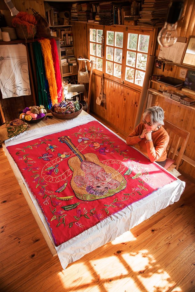 «Fue un momento de mucha reflexión, de pensar en la obra integral de Violeta, en el significado de las arpilleras bordadas y la razón para elegir un gran formato«, comentó la artista textil. Esta experiencia fue la matriz inicial de “Las Estaciones de la Violeta”.