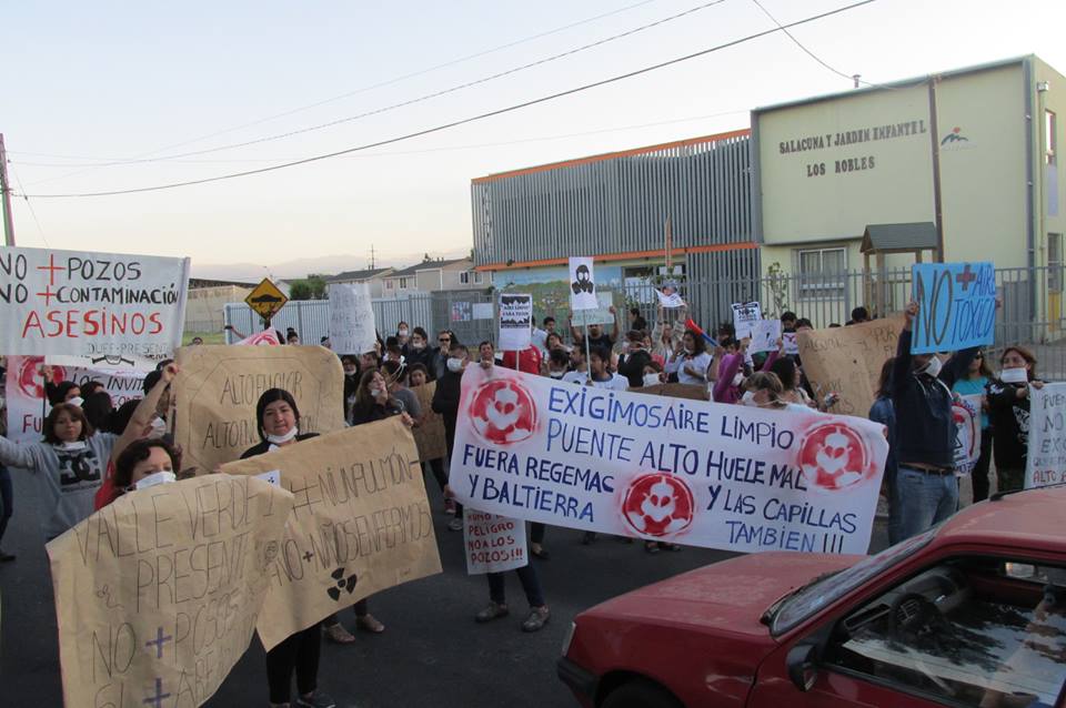 En Puente Alto, Santiago, se realizaron los días jueves 17 y viernes 18 diversas protestas y movilizaciones con motivo de visibilizar las problemáticas asociadas a los Pozos Áridos, de las empresas Baltierra y Regemac. La organización señala: » A las 06.30 a.m comenzó la protesta en las afueras del Jardín Infantil Los Robles. Se hicieron algunos cortes de tránsito regulados por carabineros, se avanzó por una de las calzadas hasta la entrada que utilizan los camiones y se encaró a varios de los trabajadores, muchos de los cuales actuaron de manera prepotente. Cabe destacar que el aire limpio que respiramos anoche ya se terminó y justo al finalizar la protesta, se inicia nuevamente el mal olor.»