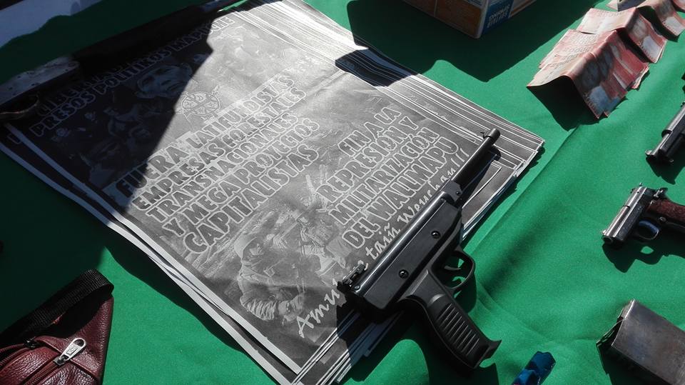 Por su parte Araucanía Online, en la línea del trabajo que han realizado los medios tradicionales de comunicación en cuanto a criminalización del Pueblo Mapuche, señaló: «AHORA: Carabineros exhibe material incautado en allanamientos en la comuna de Ercilla y Santiago, se señaló además que se encontró material audiovisual donde aparecen jóvenes encapuchados practicando disparos en alguna zona de Chile aún no determinada. Los detenidos son Hugo Melinao y un joven anarquista. Cabe señalar que en la mayoría del armamento es de fantasía, de fogueo y también real. Durante la mañana serán formalizados en la ciudad de Collipulli» .