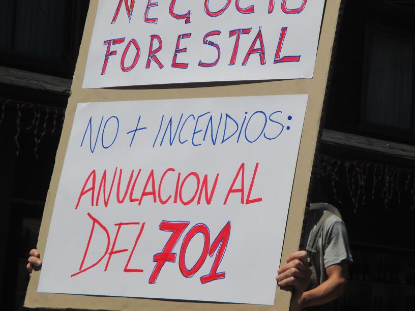 Exigimos al gobierno de Bachelet y a los parlamentarios el término y anulación de DFL 701. Instrumento fáctico creado en la dictadura militar para beneficiar a un oligopolio multimillonario siendo el Estado responsable de subsidiar por todos estos años.
