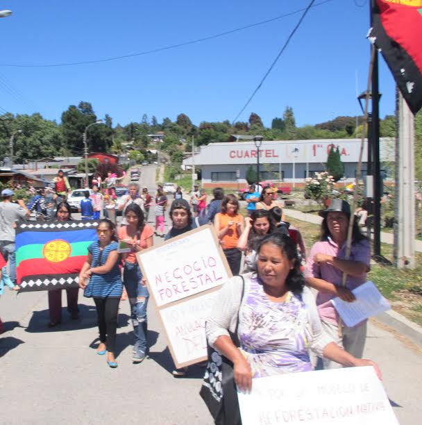 El Parlamento Mapuche de Koz Koz realizó una manifestación contra el modelo forestal de monocultivo de plantaciones de árboles y la responsabilidad empresarial y estatal en la catástrofe que vive el País a causa de los mega incendios y crisis hídrica.