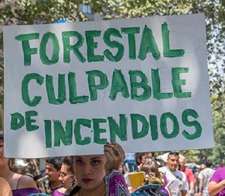 Acusamos directamente al estado y las forestales. Los que han invadido grandes territorios con un modelo de explotación que es destructor de la naturaleza y peligrosa para la vida humana. “Es la explotación de las plantaciones la que ha generado tanto combustible”. El Estado ha sido cómplice de las forestales (Mininco, Arauco, Volterra etc) de esta catástrofe. Un ejemplo palpable es como hace 40 años que llegó Forestal Arauco, comprando a 7 mil pesos la hectárea en la Contra Reforma Agraria. El Estado asfixió a los parceleros asignatarios con contribuciones y condiciones imposibles, para obligarlos a vender por migajas las parcelas, y los operadores del Estado pasaron a ser operadores de CELCO, amenazando a los parceleros mapuche y wingka de que lo perderían todo, y también enriqueciéndose estos mismos operadores, cometiendo varios delitos para apropiarse de las tierras . Luego vino la sustitución del bosque nativo, grandes incendios para cambiar el uso de suelo de bosque nativo o tierras agrícolas, a plantaciones. Tal como lo volverán a hacer ahora seguramente. Recién hoy se empieza a hablar de esta sustitución, siendo que CONAF fue cómplice y lo sigue siendo en muchas partes.
