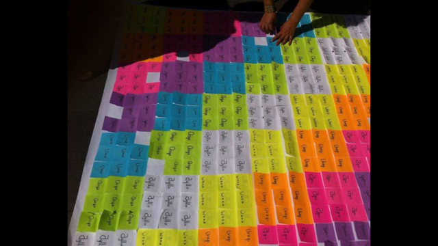 De acuerdo a su autora, «consistió en la instalación de una wiphala o bandera de los pueblos andinos, armada con notas adhesivas de colores, cada una de las cuales con una palabra en lengua aymara, en total siete palabras, una por cada color de la wiphala».
