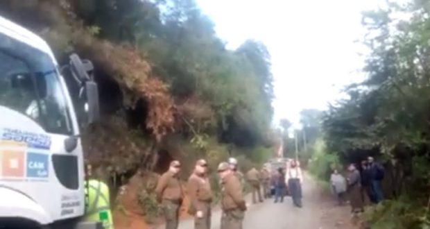 Estamos sólo a 2 kilómetros de llegar y topamos de frente con un control de Carabineros de Chile a las 7:50 am. Nos detienen y nos piden los papeles del vehículo y mi licencia. Todo en regla. Pasamos y llegamos a Tránguil. Huestes oscuras cubren los caminos y el puente… abandonamos el vehículo y nos metemos por entre ellos como en un callejón oscuro del que esperamos salir con vida, mientras pienso: “Padre…Madre…perdónenlos, porque no saben lo que hacen”.