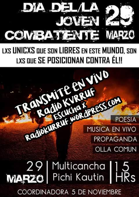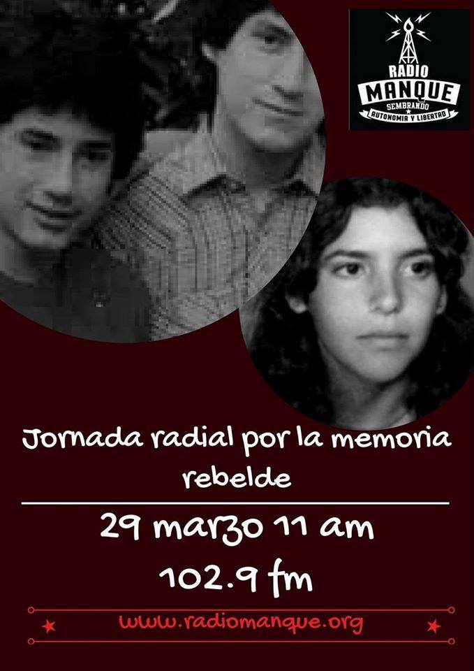 29/03/2916.- Escucha hoy miércoles 29 de marzo, en el día del/a joven combatiente, desde las 11 am, la jornada radial por la Memoria Rebelde, transmisión especial por Radio Manque junto a Radio Kvrvff.