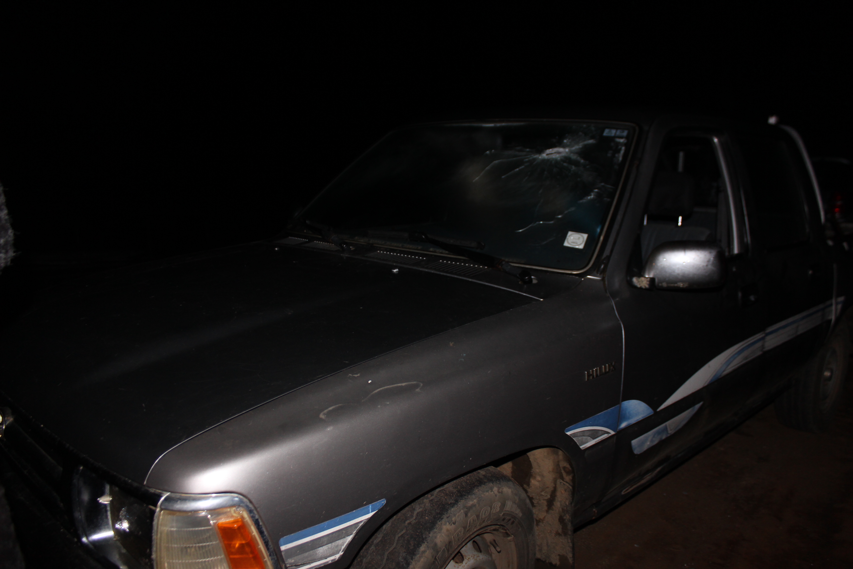 “Yo tomé a mi guagua,-como lo traía en brazos- y la escondí, en eso, mi marido me dice: me dispararon, me dispararon” relata Marisol Maril, esposa de Miguel Huenchuñir, conductor de la camioneta que resultara impactada con dos disparos por la ventana del conductor y por el parabrisas, dejando con lesiones de consideración al agricultor Mapuche oriundo del sector de Curapaillaco, que aún mantiene los perdigones en su cuerpo por la profundidad en que interceptaron, presentando del mismo modo disminución de la visión por la ruptura de vidrios sobre su rostro.