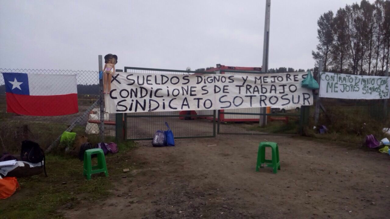 La Federación Nacional Rodrigo Cisterna se encuentra movilizada en las afueras del Complejo Horcones de la Forestal Arauco, propiedad del grupo Angelini.