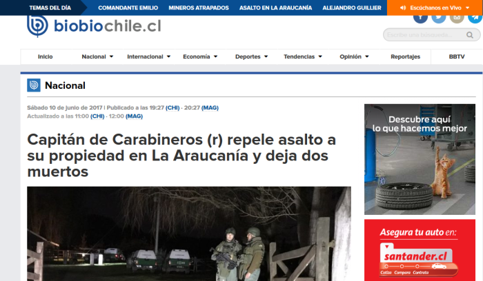 En su lugar al día siguiente Radio Biobío decide publicar el “amplio prontuario de los asaltantes abatidos”, dando por hecho, desde la conceptualización de este titular, que los jóvenes Luis Marileo y Patricio Gonzales eran asaltantes, lo que da por lógica entender que estaban asaltando cuando murieron. Así confunden y generan falsas relaciones.