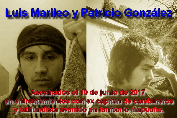 En defensa y reivindicación de Luis Marileo Cariqueo y Patricio González Guajardo. Asesinados en enfrentamientos con un ex carabinero de $hile, avenido latifundista, Ignacio Gallegos Pereira, la tarde del 10 de junio de 2017 en el fundo el Encino comuna de Los Sauces en territorio mapuche.